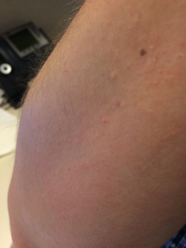 The picture of the fish above is of a dish I had recently  (not realizing at the time that it was breaded) and I paid the consequences dearly. I felt fatigued and experienced constipation soon after.  The pictures below portray the skin reaction/rash when I accidentally ingest gluten -containing foods.